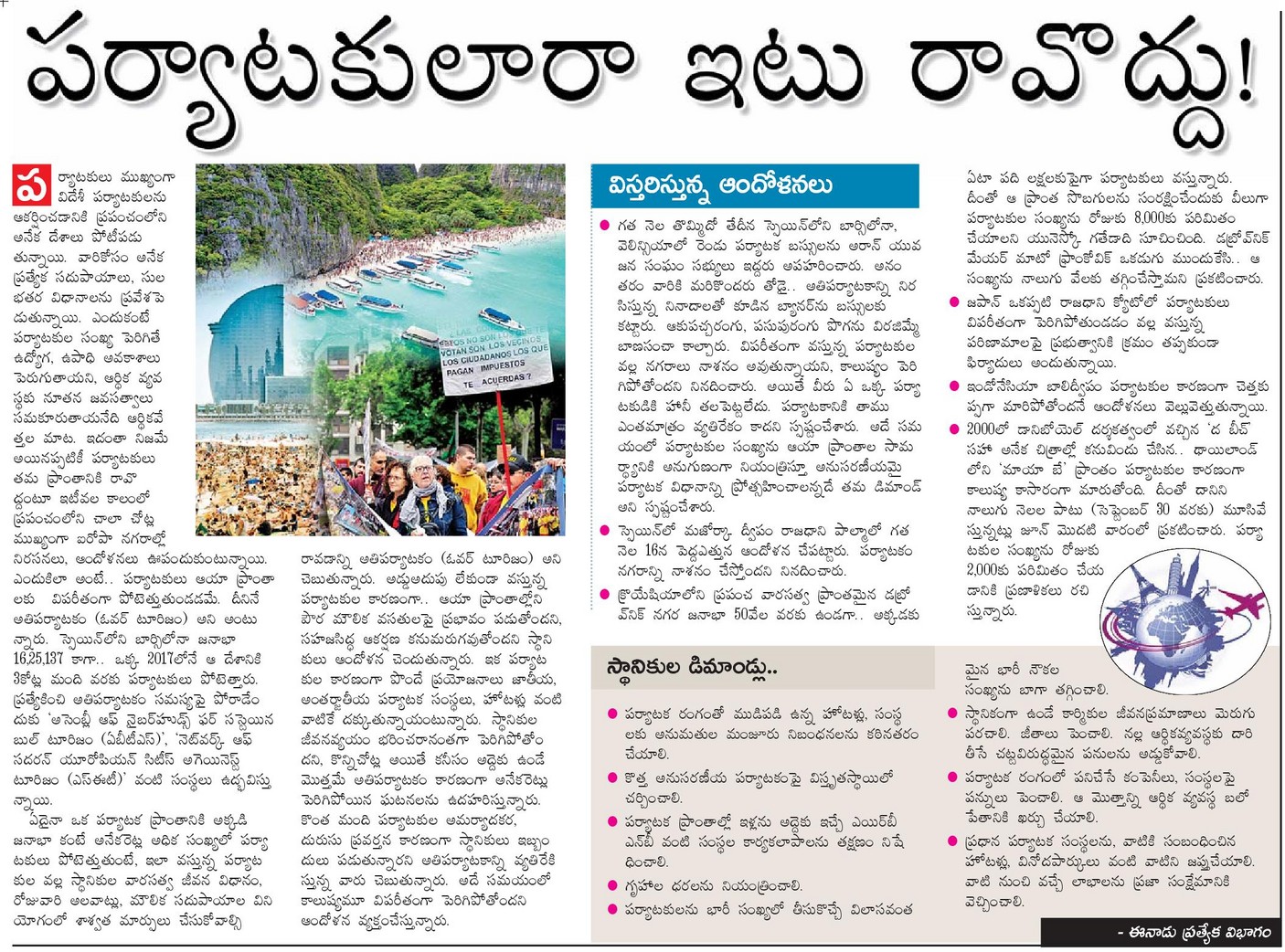 పర్యావరణహితంగా, స్థానికులకు ఇబ్బంది కలిగించకుండా ఉండేటట్లుగా పర్యాటకరంగానికి తగిన మార్గదర్శకాలు రూపొందించి అమలుచెయ్యాలి. ఇటీవల ఈ విషయంపై ఈనాడు దినపత్రిక లో వచ్చిన ఈ వార్త చదవండి. మీ సలహాలు కూడా రాయగలరు.