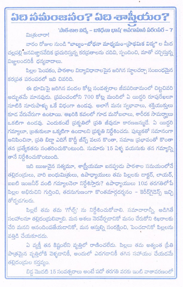 ఏది సమంజసం? ఏది శాస్త్రీయం? May 17, 2019.... (14-Jul-2020)