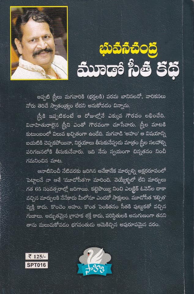‘భువన చంద్ర’ గారు 50 – 60 ఏళ్ల క్రితం (1960 లలో) మన పల్లెటూర్లలో జీవితాన్ని ఓ గడుగ్గాయి అయిన “సీత” అనే పాత్రలోకి పరకాయ ప్రవేశం చేసి రాసినది ఈ నవల.