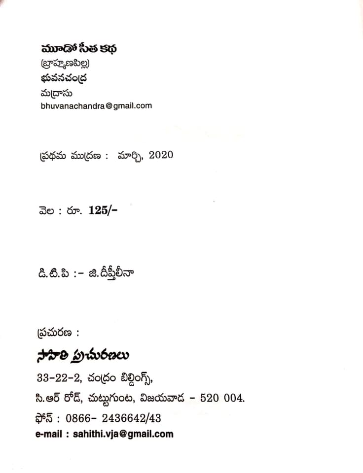 మిత్రులు డా. కోనేరు శ్రీధర్ గారు పంపిన ‘మూడో సీత కధ’ నవల చదివినప్పుడు -