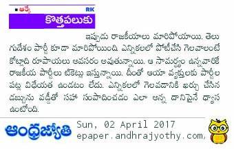 02-04-2017 ఆదివారం ‘ఆంధ్రజ్యోతి’లో రాధాకృష్ణ గారు రాసిన ‘కొత్తపలుకు’ చదివిన తరువాత గుర్తుకొచ్చిన విషయాలు, కలిగిన భావాలు: