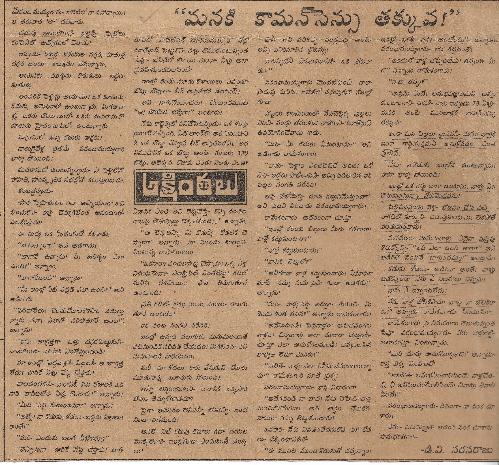 మనకి కామన్ సెన్స్ తక్కువ! - DV నరసరాజు - అక్షింతలు.... (30-Nov--0001)